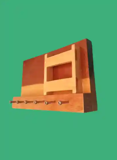 Este organizador de pared combina funcionalidad y estilo, fabricado en madera de banak de alta calidad con un diseño rectangular y elegante.
